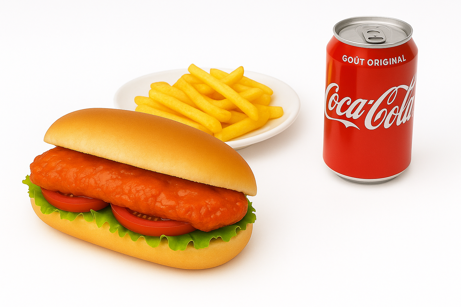 4 Steak+chevre+mozzarella+cheddar+becon avec frites et boisson 33cl