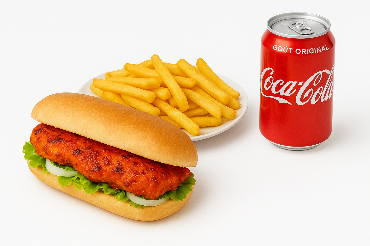 Poulet Tandoori+fromage+frites+boisson 33cl